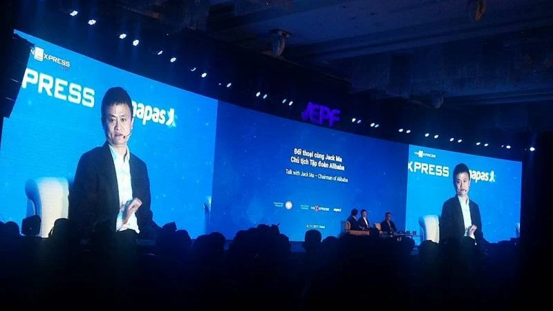 Tỉ phú Jack Ma chia sẻ với cộng đồng doanh nghiệp Việt. Ảnh: TRÀ PHƯƠNG