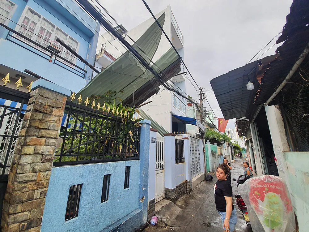 Một nhà dân khác trên đường Hoài Thanh cũng bị gió lốc cuốn phăng mái ngói. Giông lốc gây ảnh hưởng nhiều nhất là khu vực kênh Song Đôi (phường 14, quận 8). Nhiều người đang ở trong nhà phải bồng con cháu, hô hoán người thân tháo chạy ra ngoài.