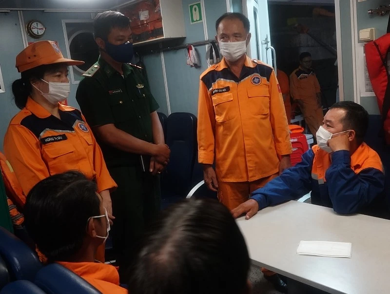 Các ngư dân gặp nạn trong tình trạng mệt mỏi sau nhiều giờ nỗ lực chống chọi dưới thời tiết xấu, tinh thần hoảng loạn và được đội ngũ y tế chăm sóc sức khỏe tích cực trên hành trình về đất liền.
