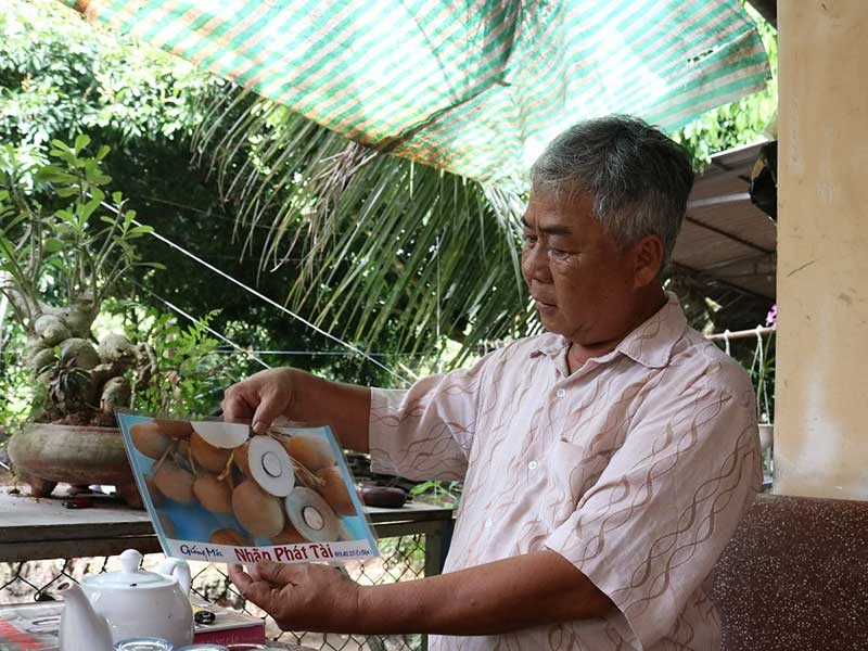 Ông Út Hiện đang nói về giống nhãn Phát tài mà ông mới nghiên cứu được. Ảnh: THANH TUYỀN