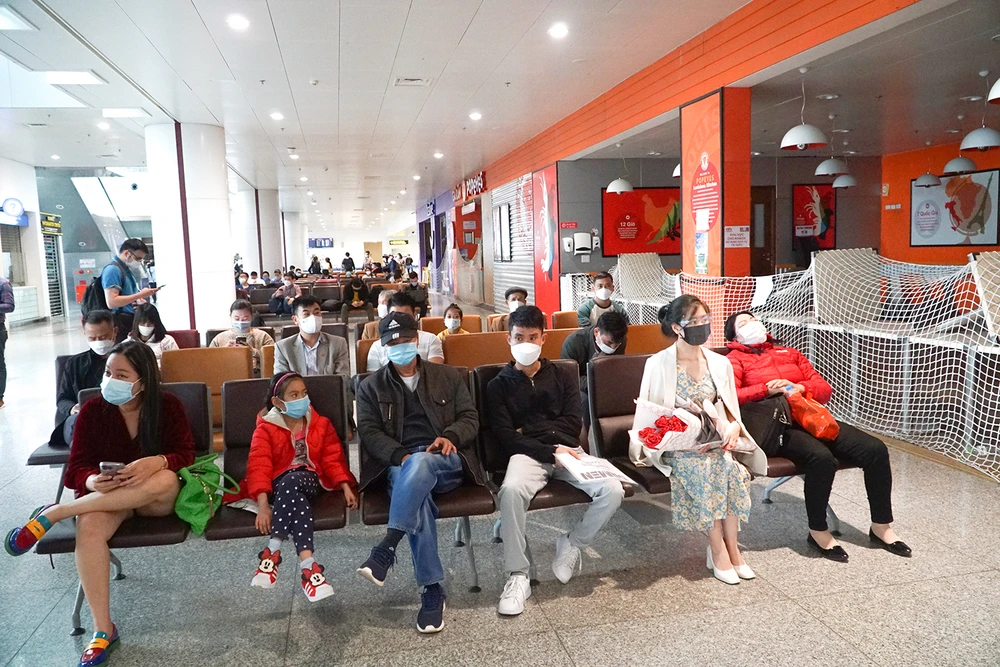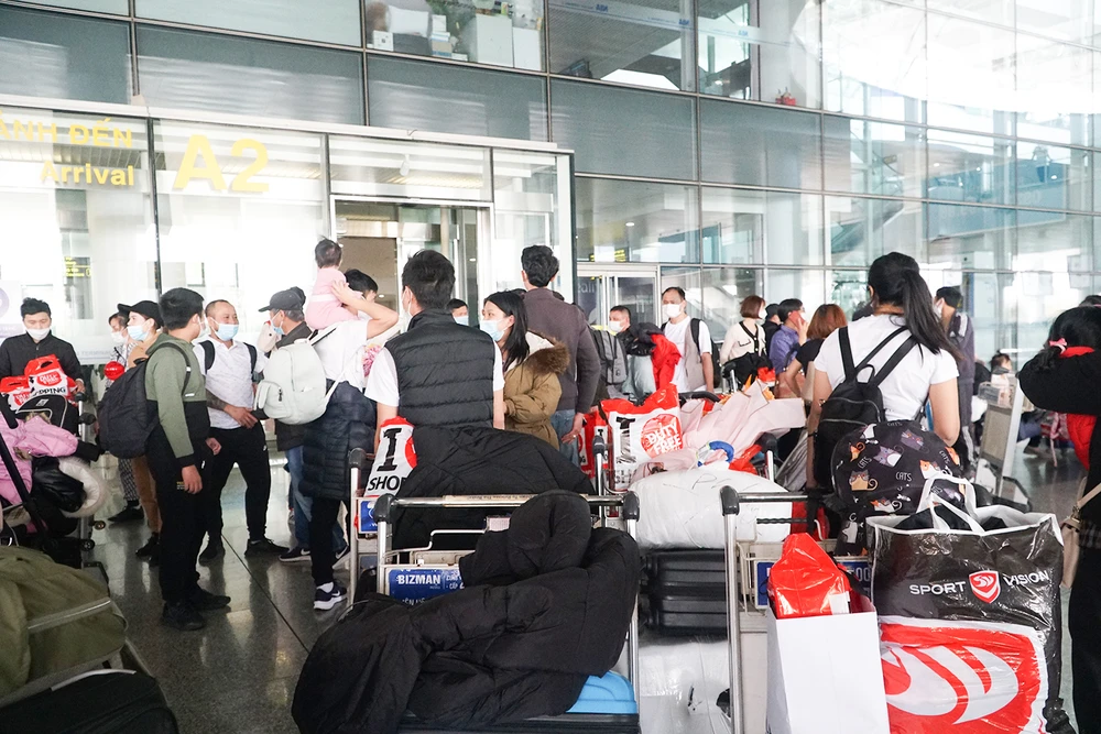 Nhiều người dân có mặt từ sáng sớm để đón thân nhân của mình trở về nước. Ảnh PHI HÙNG