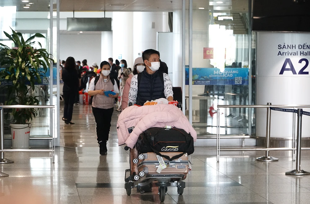 Trưa cùng ngày, chuyến may bay chở công dân từ vùng chiến sự đã hạ cánh an toàn. Ảnh PHI HÙNG
