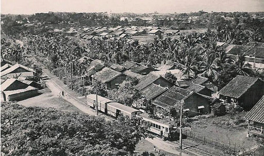 Tàu lửa xưa đi trên đường Bùi Hữu Nghĩa để ra ga Gia Định, hay còn gọi ga Bà Chiểu. Ảnh tư iệu