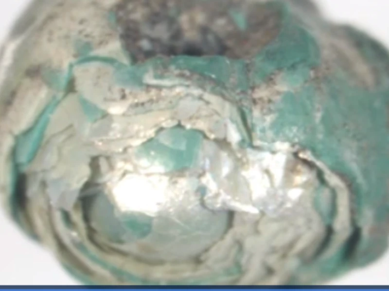 Các mảnh vỡ sau này được xác định là 14 viên ngọc trai, đa lớp, chủ yếu được bao phủ bởi cacbonat canxi. Các viên ngọc có đường kính khoảng 1,5-2 mm và mỗi viên đều được xuyên lỗ nhỏ ở giữa.