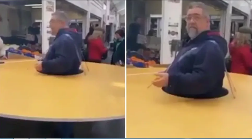 Người đàn ông còn được nhìn thấy mang theo chiếc kẹp mà người ta thường dùng để nhặt rác, nhờ đó ông có thể gắp được món hàng muốn mua.