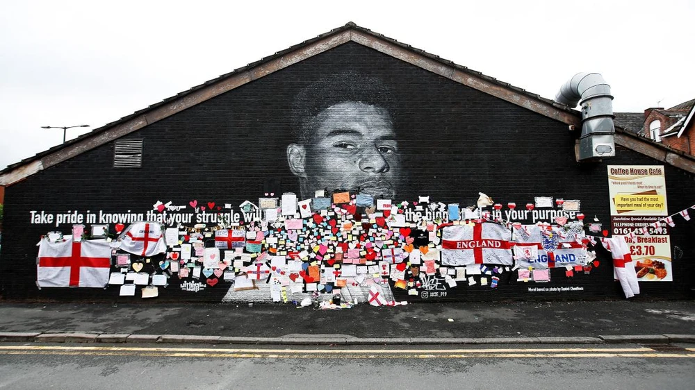 Bức tranh tường của Rahsford tại quê nhà nhận được chi chít lời yêu thương từ người hâm mộ. ẢNH: REUTERS