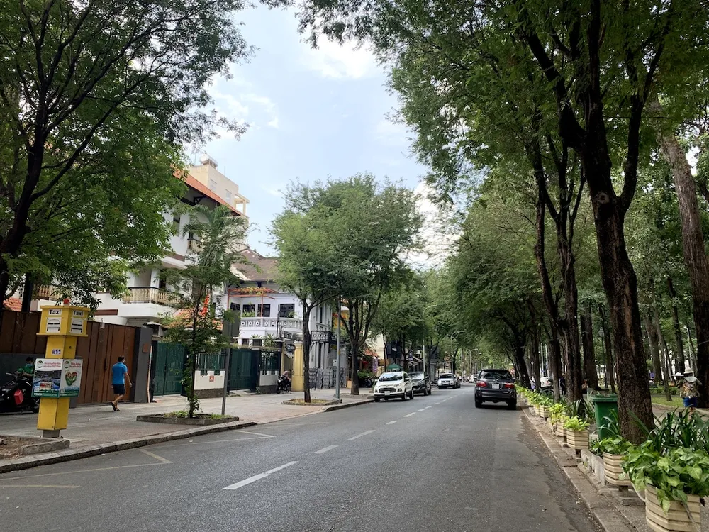 Đường Hàn Thuyên (quận 1) với dãy quán cà phê, nhà hàng vắng lặng vào 10 giờ sáng 30-3. Ảnh: QT