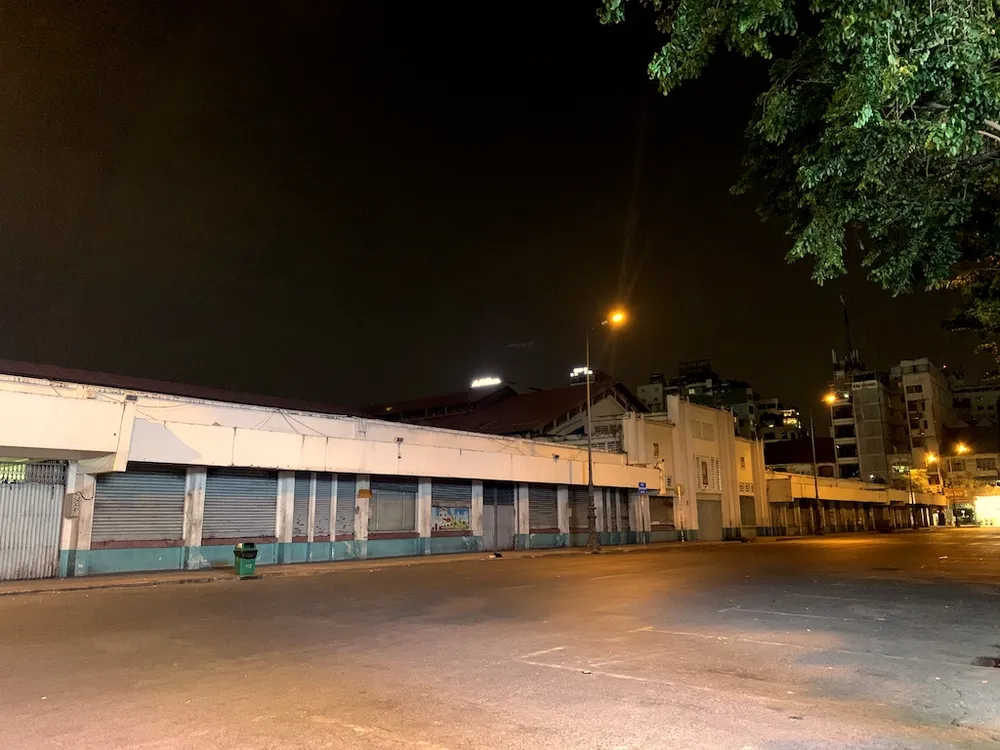 Cửa Đông chợ Bến Thành (đường Phan Bội Châu) không còn chợ đêm, không một bóng người vào 21 giờ tối 28-3. Ảnh: Q.T