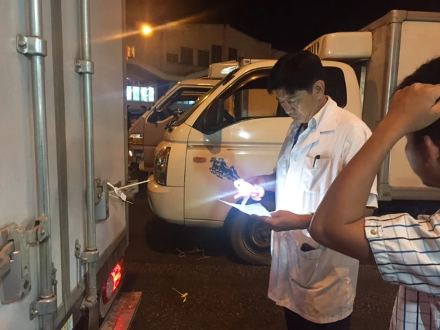 Đoàn đến chợ Bình Điền 12 giờ 30 sáng. Thời điểm này có 22 xe vào chợ nhưng chỉ có bốn xe chở heo có đầy đủ thông tin của trang trại chăn nuôi và cơ sở giết mổ. Phần lớn chỉ có thông tin cơ sở chăn nuôi hoặc thông tin của cơ sở giết mổ.