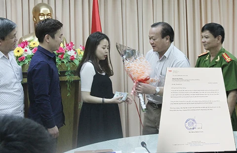 Lực lượng chức năng hoàn trả số tài sản bị đánh mất cho du khách Lee Kyung Sooe (Hàn Quốc) và công hàm của Đại sứ quán Áo cám ơn việc chính quyền đã giúp đỡ anh David. Ảnh: TT