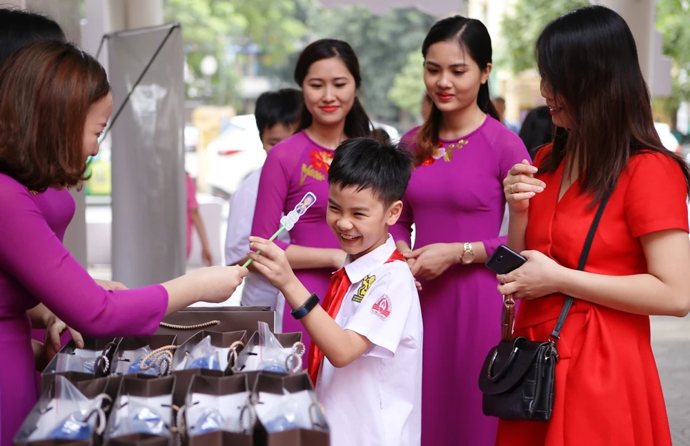Tặng quà cho các bé và phụ huynh tham gia chiến dịch.