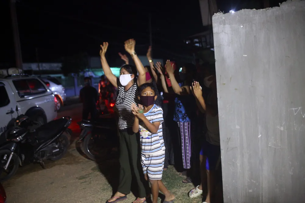 Nhân dân các thôn Văn Lâm 1, 2 trên tuyến đường ráp ranh với Văn Lâm 3 đứng trước cửa nhà nhảy múa reo hò.
