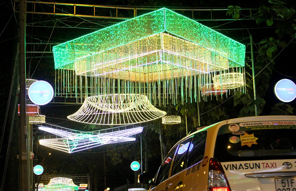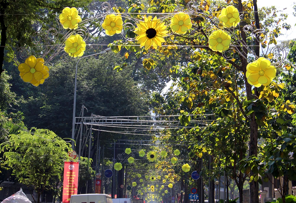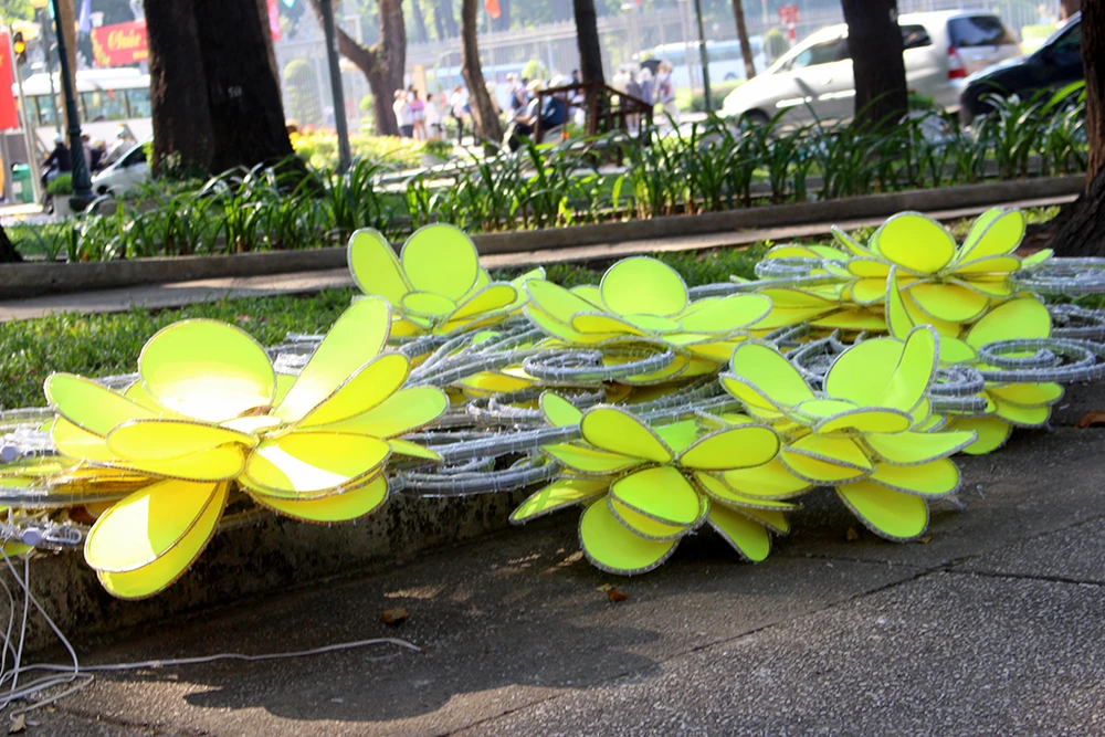 Ngày 23-1 (nhằm 26 Tết Đinh Dậu), quay trở lại đường Nam Kỳ Khởi Nghĩa (đoạn từ đường Điện Biên Phủ đến đường Lê Lợi đang dần khoác lên một công trình ánh sáng đường phố mới. Đây là thiết kế với những cánh hoa mai vàng tượng trưng cho mùa xuân.