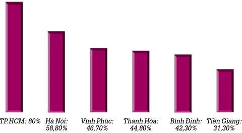 Tỉ lệ người dân tại các địa phương biết đến hoạt động thí điểm TPL (Theo Viện Nghiên cứu pháp lý - Bộ Tư pháp). Đồ họa: KP