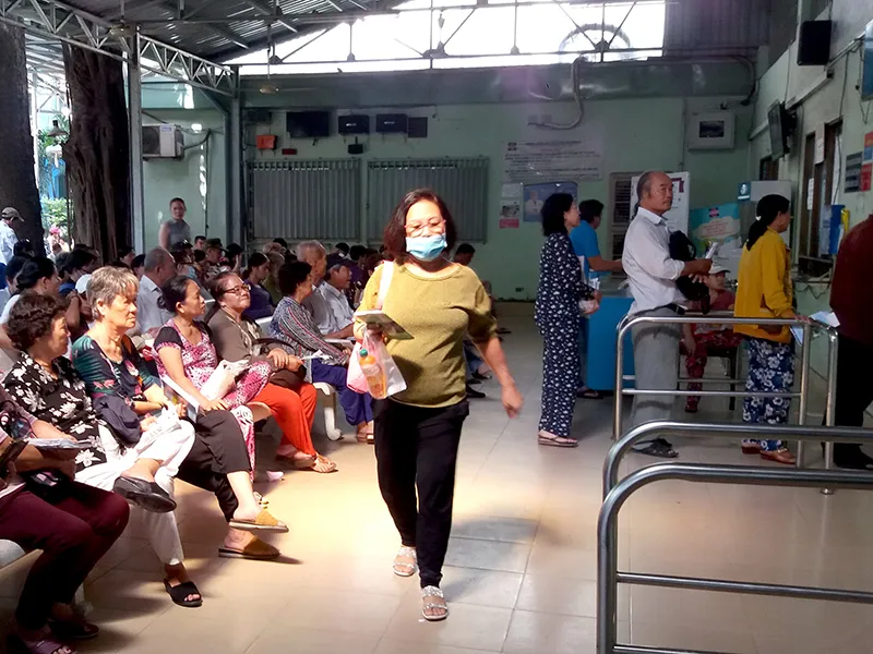 Bệnh nhân đang chờ phát thuốc BHYT tại BV Nguyễn Tri Phương (quận 5, TP.HCM). Ảnh: HTD