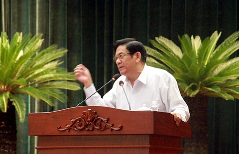 Phó Chánh án TAND Tối cao Tống Anh Hào tại buổi tập huấn. Ảnh: L.TRINH