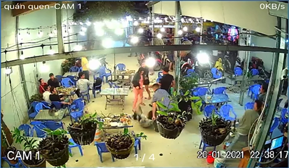 Đỉnh điểm, hai bên xông vào hỗn chiến. Nhiều người sử dụng các đồ vật tại chỗ và cả hung khí tấn công nhau dữ dội. Một người chủ quán thấy sự việc căng thẳng can ngăn cũng không hiệu quả. Thực khách, nhân viên thấy vậy tháo chạy tán loạn.