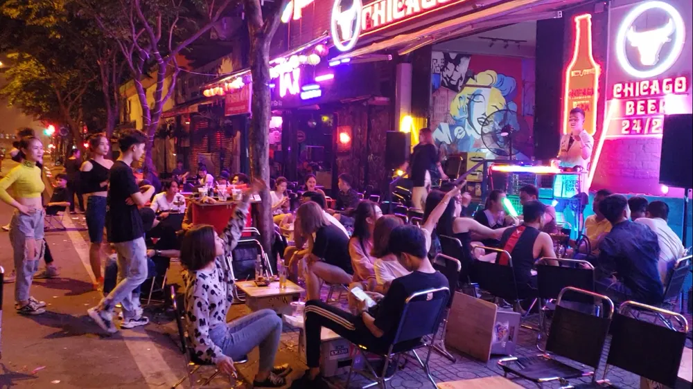 Nhiều nam nữ lắc lư theo điệu nhạc tại một dãy quán gần 286 Phạm Văn Đồng. Ảnh: TỰ SANG