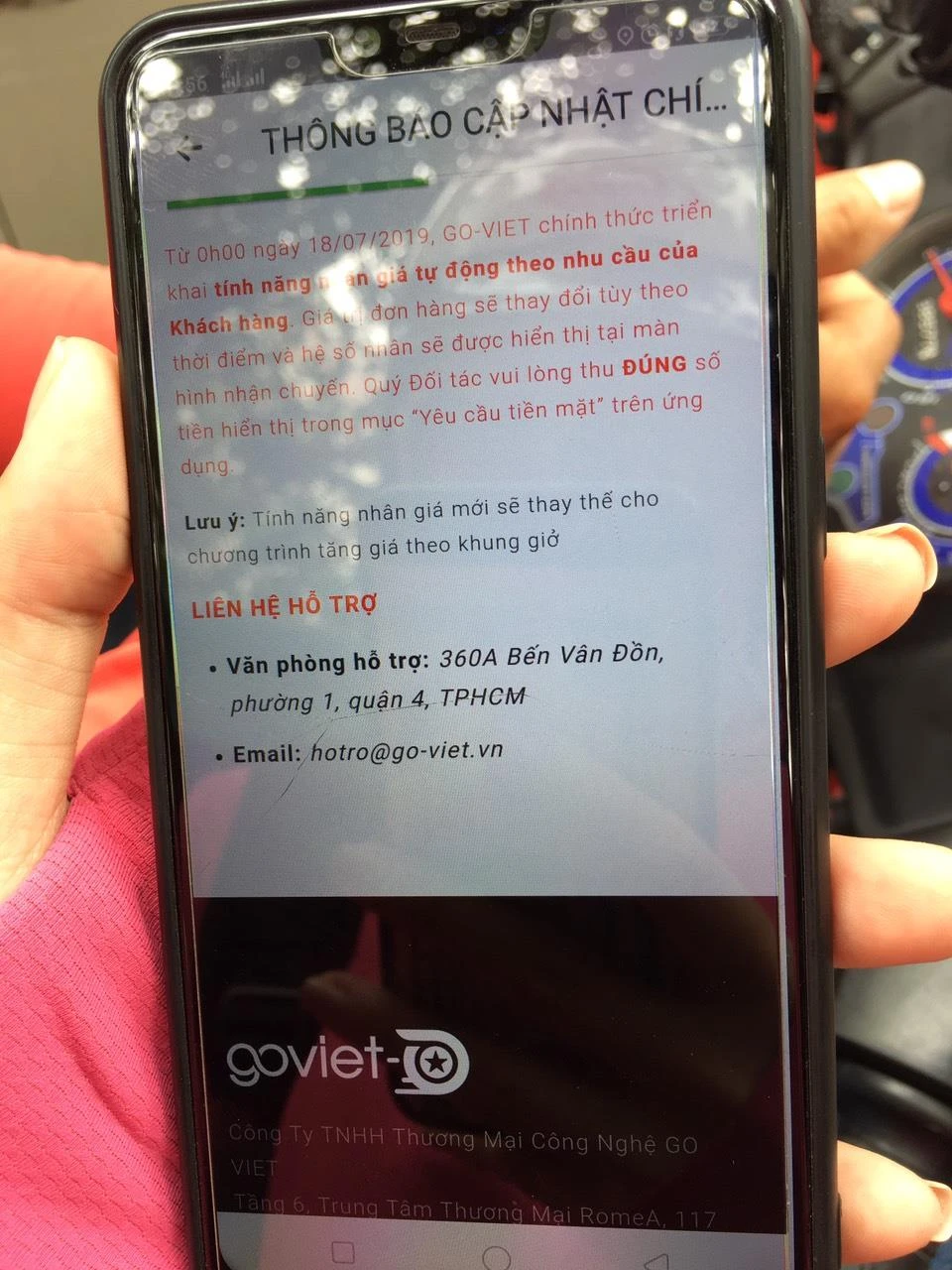Thông báo về chính sách mới được Go - Viet gửi cho các tài xế và áp dụng từ 00 giờ ngày 18-7.