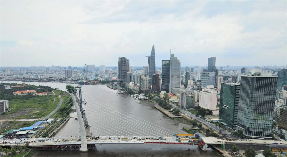Cầu Thủ Thiêm 2, một trong những công trình trọng điểm trên địa bàn TP.HCM, sẽ hoàn thành vào quý II-2022. Ảnh: LINH PHƯƠNG