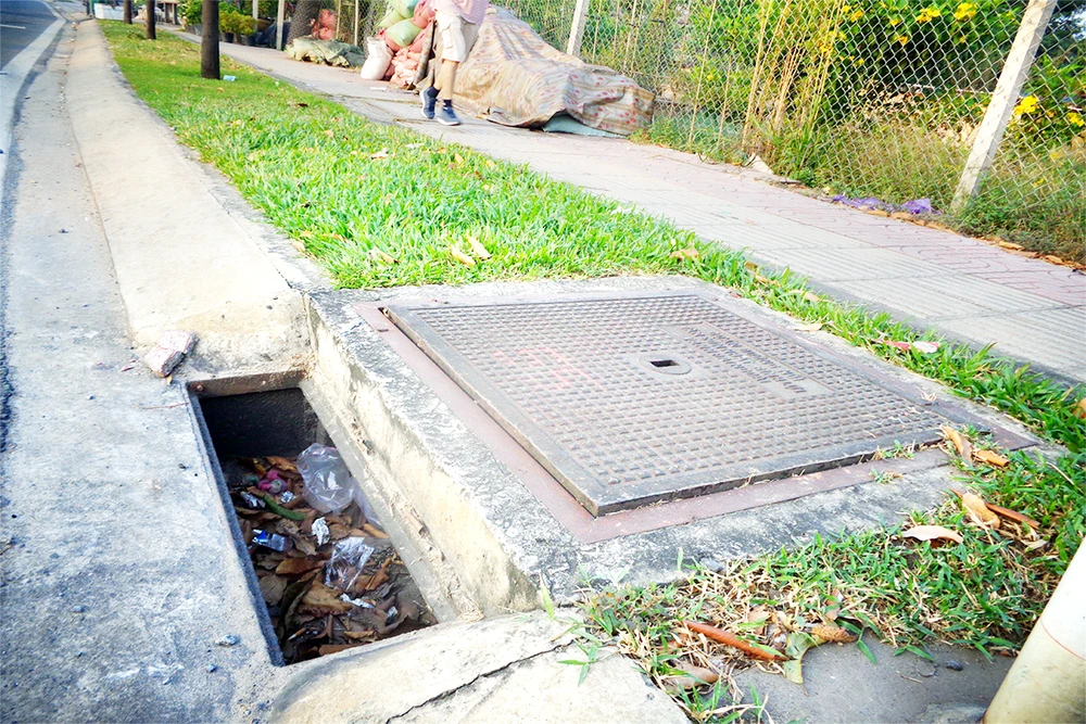 Hai bên đường Phạm Văn Đồng, đoạn thuộc phường Linh Đông, quận Thủ Đức, TP.HCM có rất nhiều vỉ sắt hố ga bị mất.