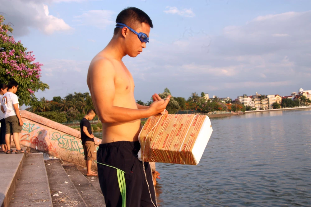 Được biết, đây là một góc của Hồ tây, mực nước nông. Nhiều người có thể ra xa bờ đến cả trăm mét
