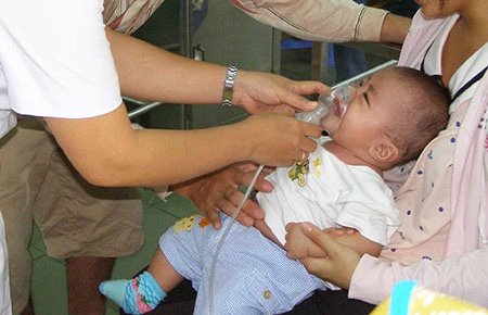 Nhân viên y tế BV Nhi đồng 2 (TP.HCM) cho trẻ mắc bệnh sởi thở máy. Ảnh: TRẦN NGỌC