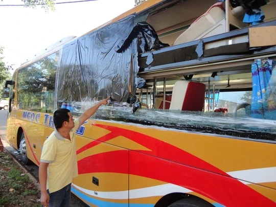 Một xe khách bị ném đá vỡ kính xe