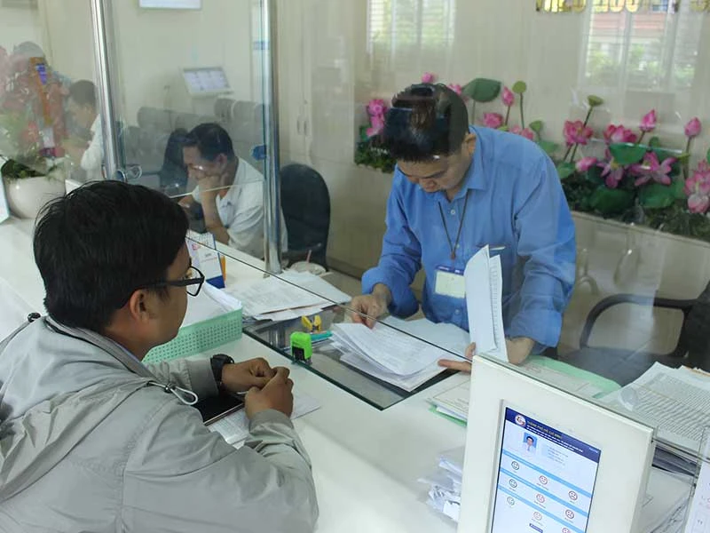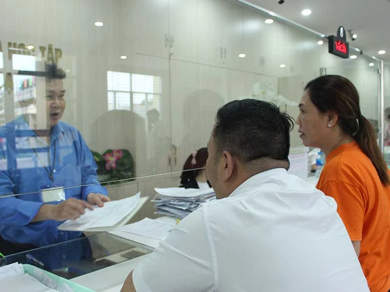 Người dân, doanh nghiệp đến đăng ký kinh doanh tại UBND quận Bình Tân sẽ được cán bộ cảnh báo, gửi thông báo về tình trạng đối tượng giả danh cán bộ thuế để bán sách. Ảnh: LÊ THOA