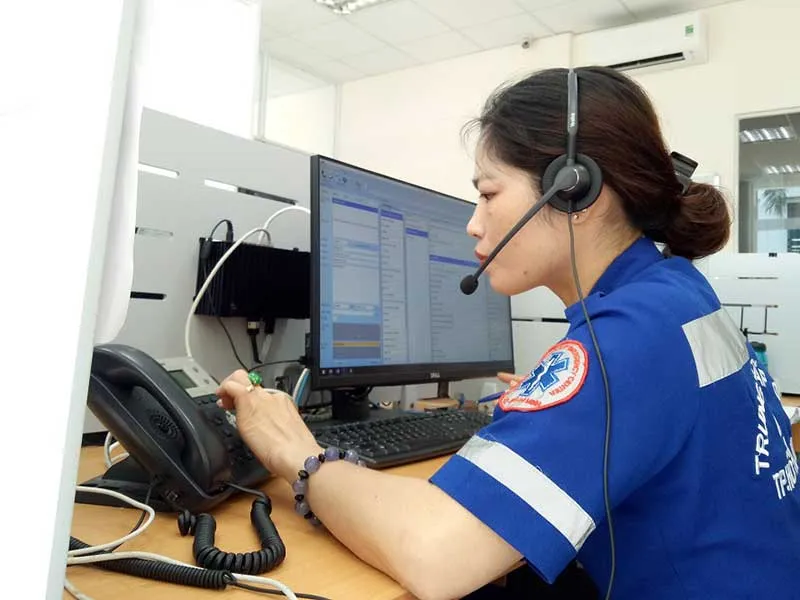 Chị Nguyễn Thị Hạnh túc trực bên những cuộc gọi cấp cứu. Ảnh: TRÚC PHƯƠNG