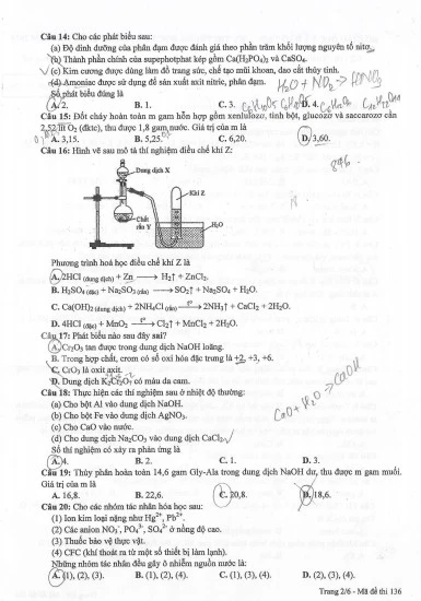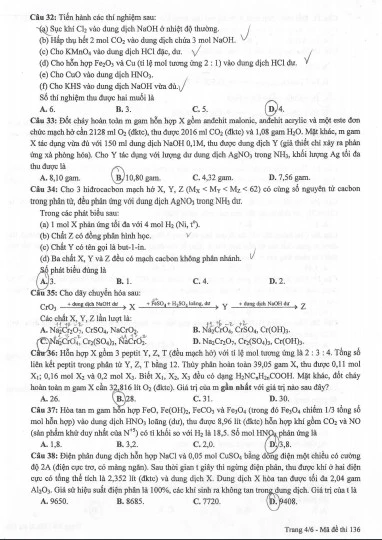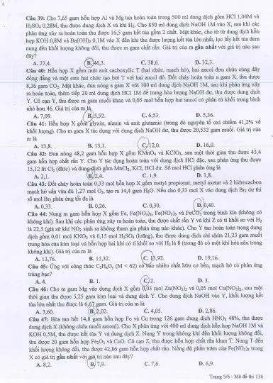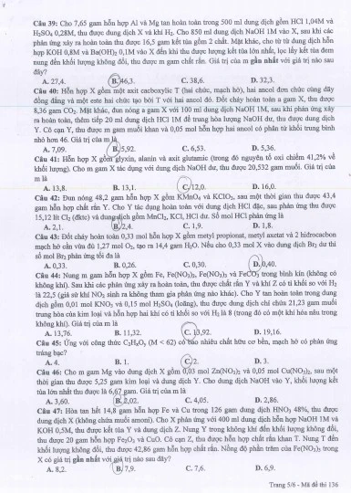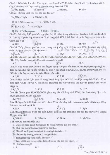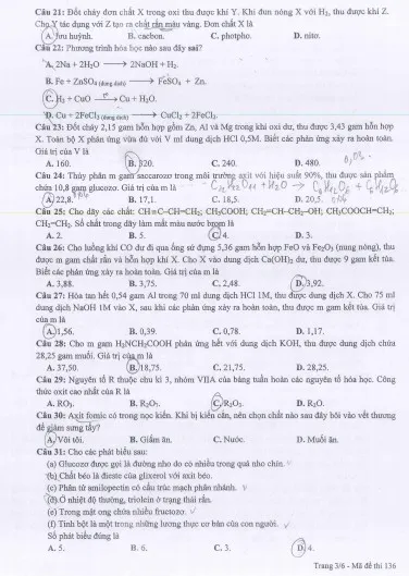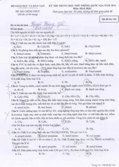 Đề Hóa học (Mã đề 136): Tải về máy để xem, BẤM VÀO ĐÂY.