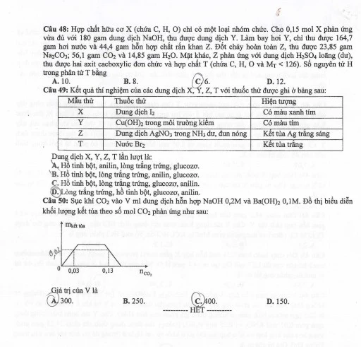 Gợi ý bài giải môn Hóa học, toàn bộ 6 mã đề. BẤM XEM TẠI ĐÂY