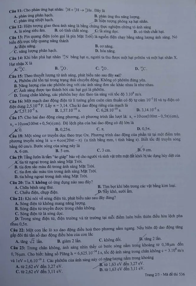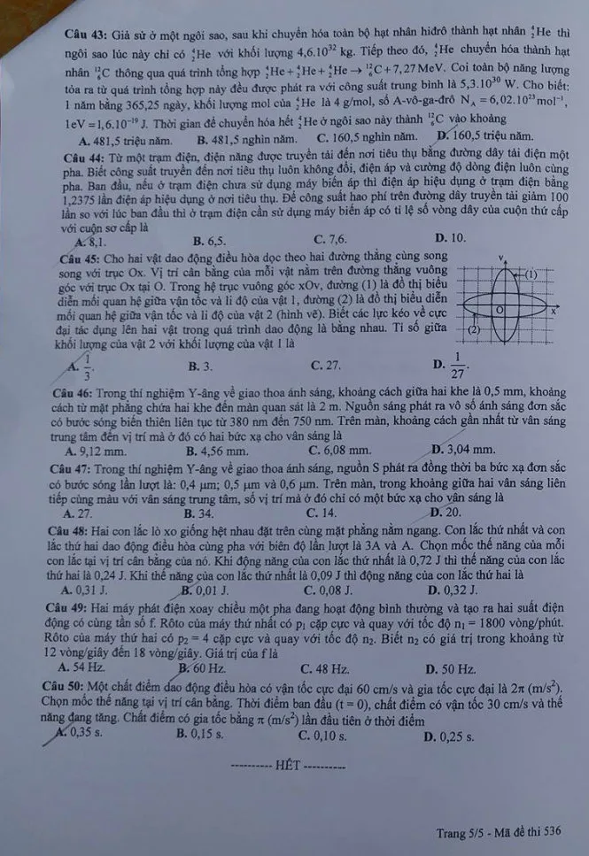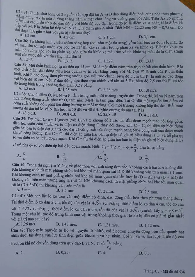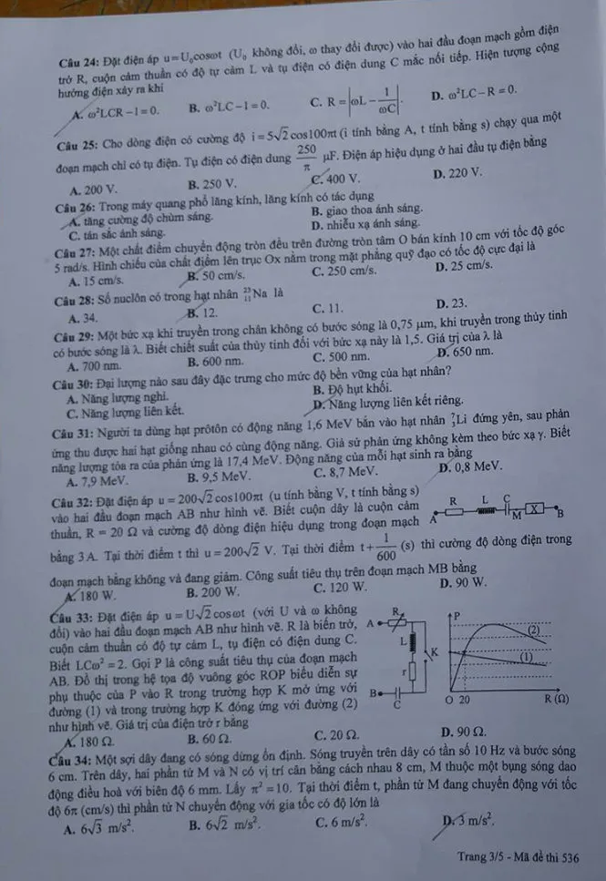 Gợi ý bài giải môn vật lý. Mã đề 536. Bạn đọc tải về, xin mời BẤM TẠI ĐÂY