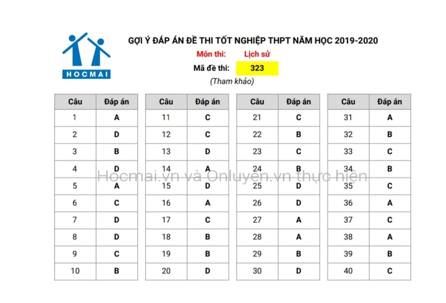 Gợi ý đáp án bài thi môn Lịch Sử: