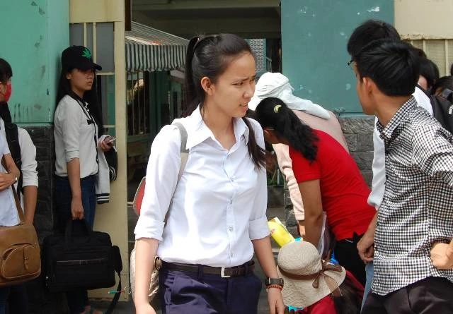 Thí sinh dự thi CĐ 2014 vừa kết thúc môn thi cuối cùng. Ảnh: H.Vi