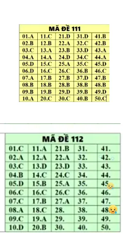 Mã đề 111, 112: