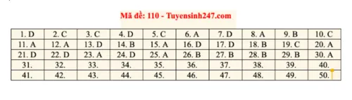 Mã đề 110: