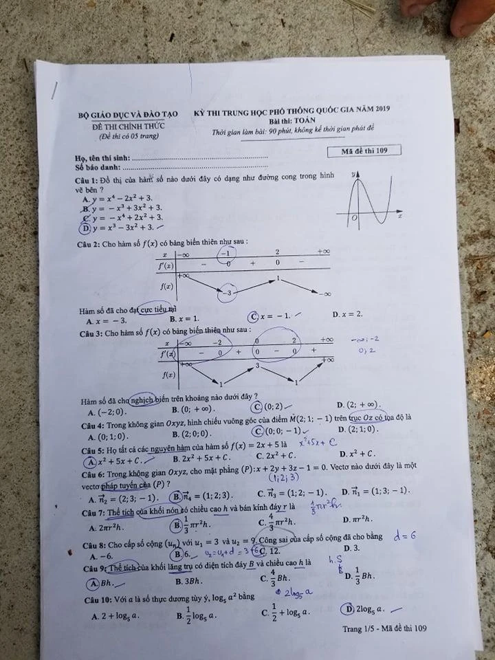 Gợi ý giải mã đề 109: