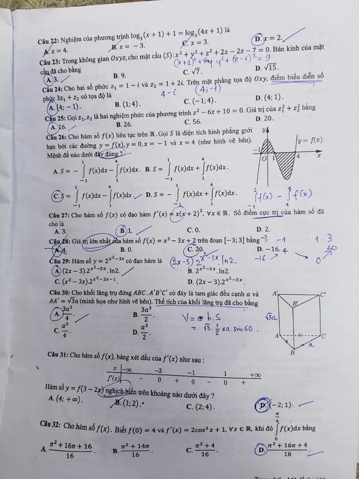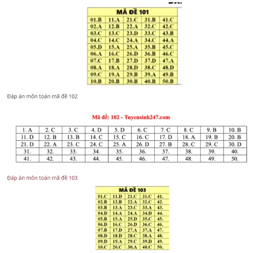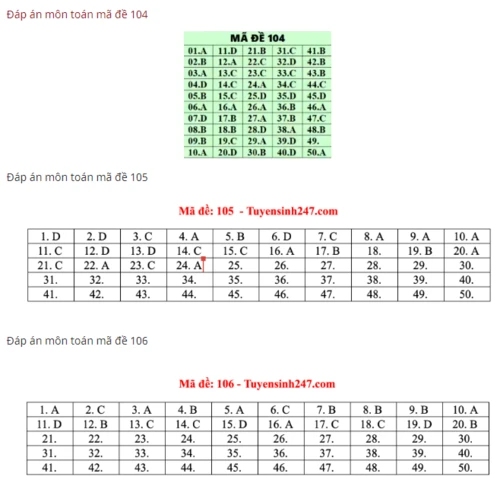 Mã đề 104, 105, 106: