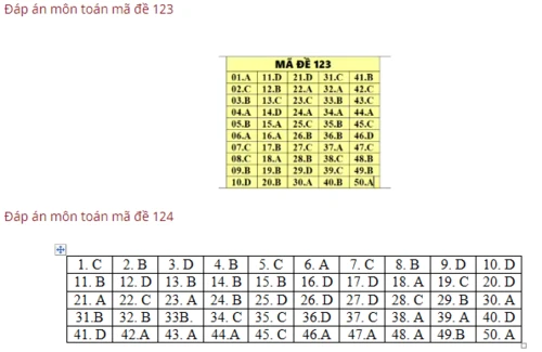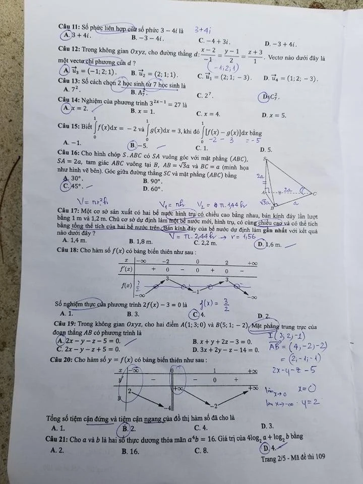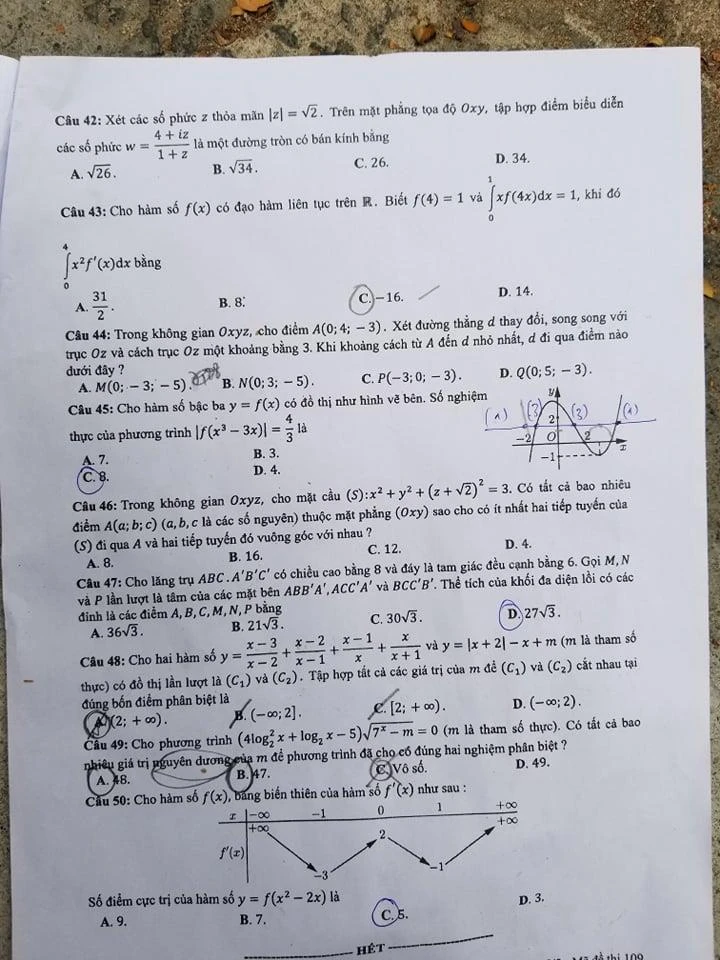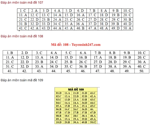 Mã đề 107, 108, 109:
