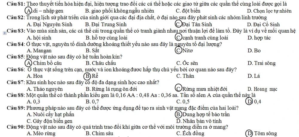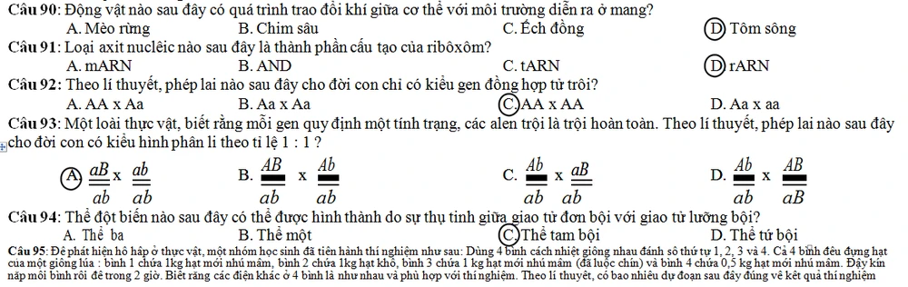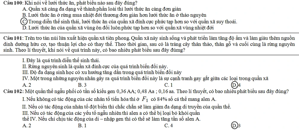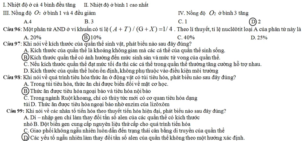 Gợi ý giải đề thi môn sinh kỳ thi THPT quốc gia