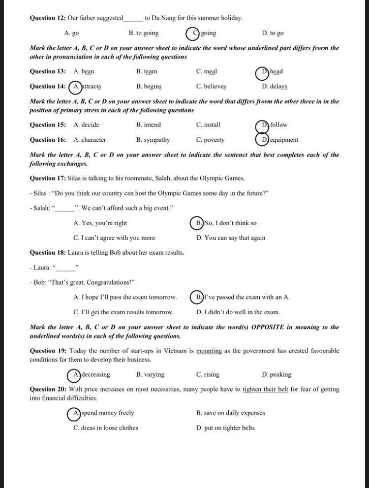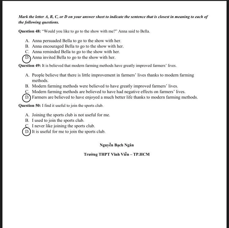 Dưới đây là gợi ý giải đề thi môn tiếng Anh của cô Nguyễn Bạch Ngân - Trường THPT Vĩnh Viễn, TP.HCM: