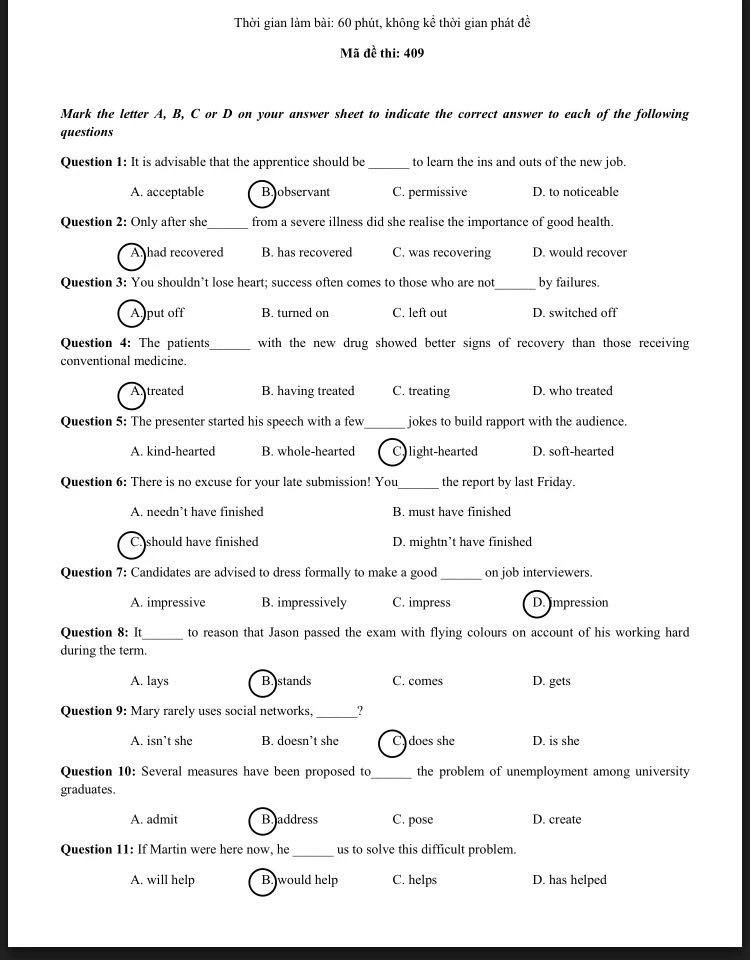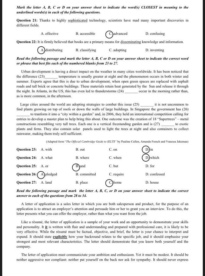 Gợi ý giải đề thi môn tiếng Anh