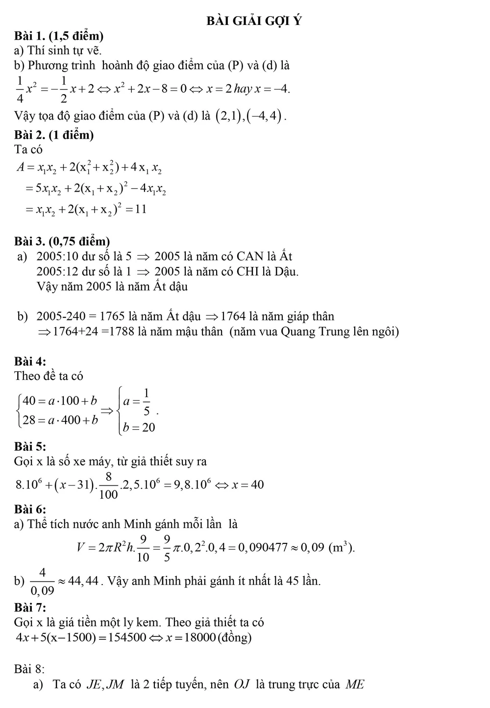 Dưới đây là phần gợi ý giải đề môn Toán