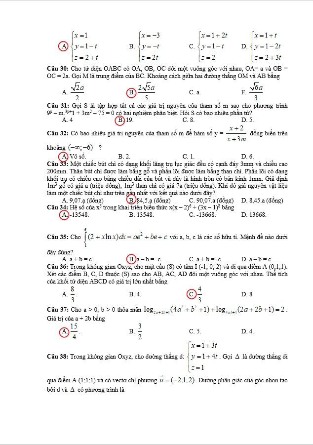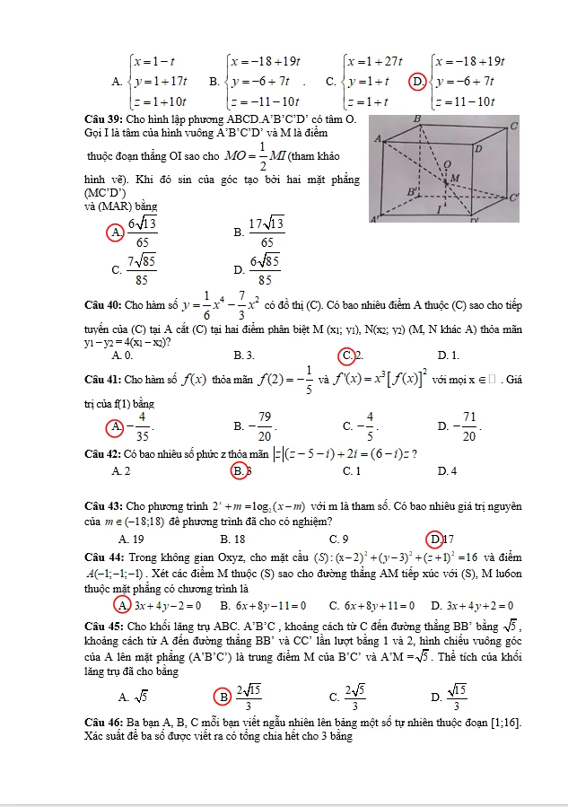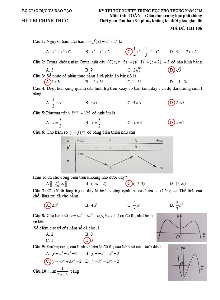Gợi ý kết quả môn toán kỳ thi tốt nghiệp THPT quốc gia 2018