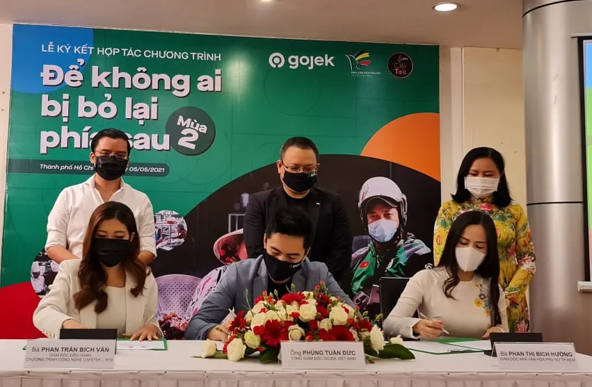 Sáng ngày 5-5, Gojek Việt Nam, nền tảng công nghệ đa dịch vụ theo yêu cầu, công bố việc ký kết biên bản ghi nhớ với Nhà Văn hoá Phụ Nữ TP.HCM, cùng chương trình CafeTek của Đài truyền hình TP.HCM để khởi động dự án “Để không ai bị bỏ lại phía sau – Mùa 2”.