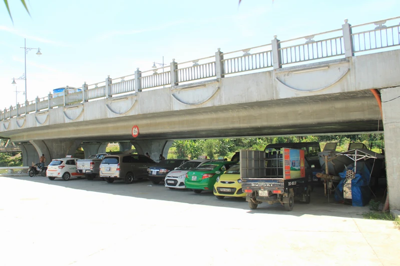 Chân cầu Dã Viên trở thành "bãi xe" và cũng là nơi nghỉ mát của nhiều người dân. Ảnh: NGUYỄN DO