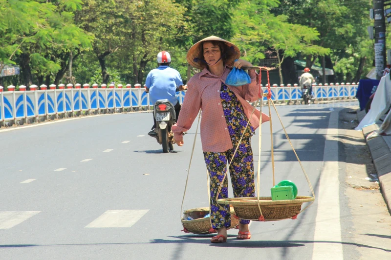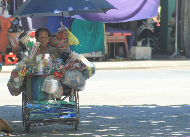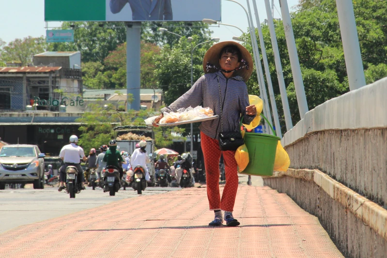 Người đi bán rong mệt mỏi trong cái nắng gay gắt. Ảnh: NGUYỄN DO