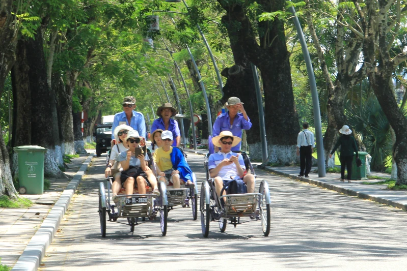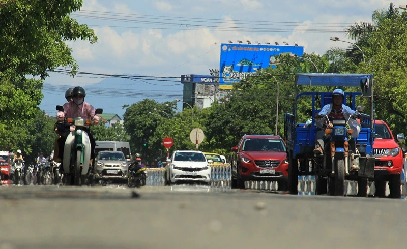 Những ngày vừa qua, nhiệt độ tăng cao khiến người dân TP Huế (Thừa Thiên-Huế) có thể cảm nhận nắng nóng gay gắt ngay từ đầu buổi sáng và kéo dài cho đến chiều tối. Nắng nóng khiến mặt đường như bị chảy nhựa. Ảnh: NGUYỄN DO