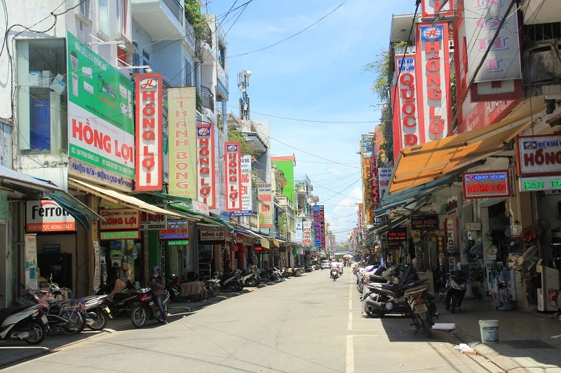 Giữa trưa, nền nhiệt tăng cao, các tuyến đường chính tại TP Huế như Hùng Vương, Nguyễn Huệ, Trần Hưng Đạo, Lê Lợi... vắng hẳn bóng người. Thay vào đó, các công viên dọc bờ sông Hương, siêu thị có khá đông người dân đến để… tránh nắng nóng. Ảnh: NGUYỄN DO